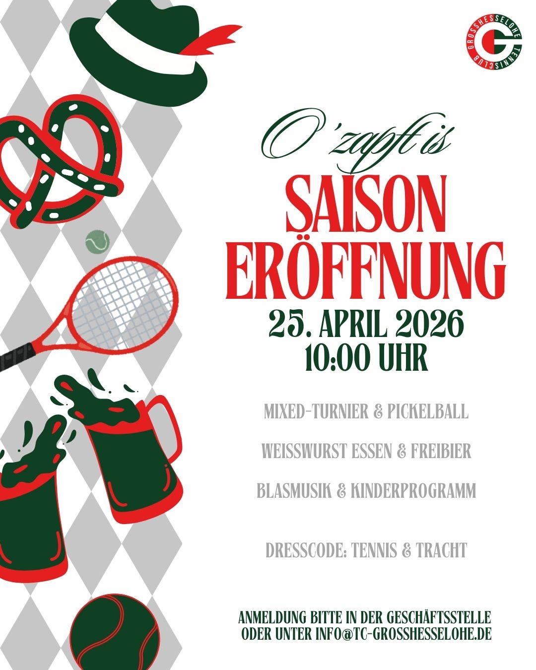 Der Tennisclub Großhesselohe, idyllisch am Isarhochufer gelegen, blickt auf eine reiche Geschichte zurück und steht heute für exzellenten Tennissport kombiniert mit einem lebhaften Clubleben. Entdecken Sie unseren Traditionsverein im Münchner Süden.
